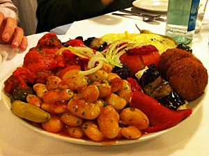 โยเกิร์ตผสมผัก, มะเขือม่วงบด, ฮูมมุส, มะกอกเทศ